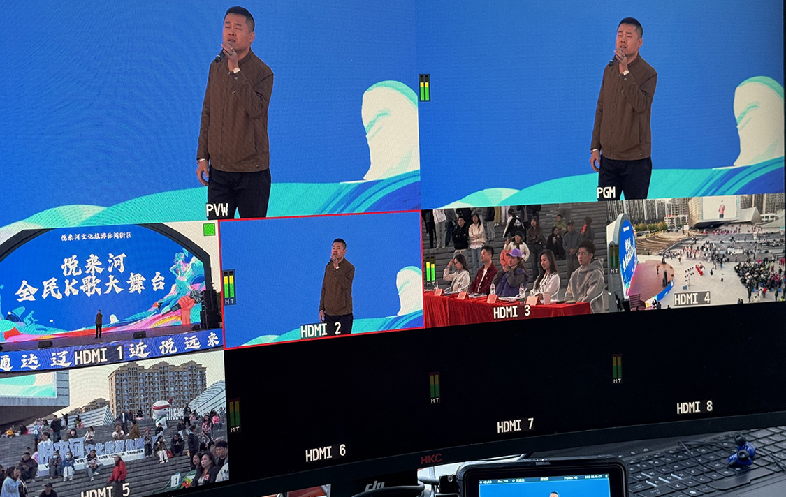 在活动现场导播制作中心部署了 1 台美乐威 Pro Router One 5G 聚合路由器,聚合了 1 路移动 5G 和 1 路电信 4G 蜂窝网络,实现网络带宽叠加与智能流量分配。直播电脑通过连接聚合路由器的 LAN 接口获得网络,通过导播制作软件将接入的 5 路摄像机画面进行直播画面切换和包装。最后将 PGM 画面通过抖音直播伴侣推流直播到“通辽市悦来河旅游休闲街区”官方抖音直播平台。整个直播期间,观众们可清晰地看到现场画面,直播全程画面流畅稳定不卡顿。