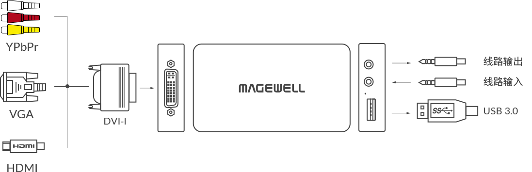 DVI-I转HDMI + 分量信号转接线