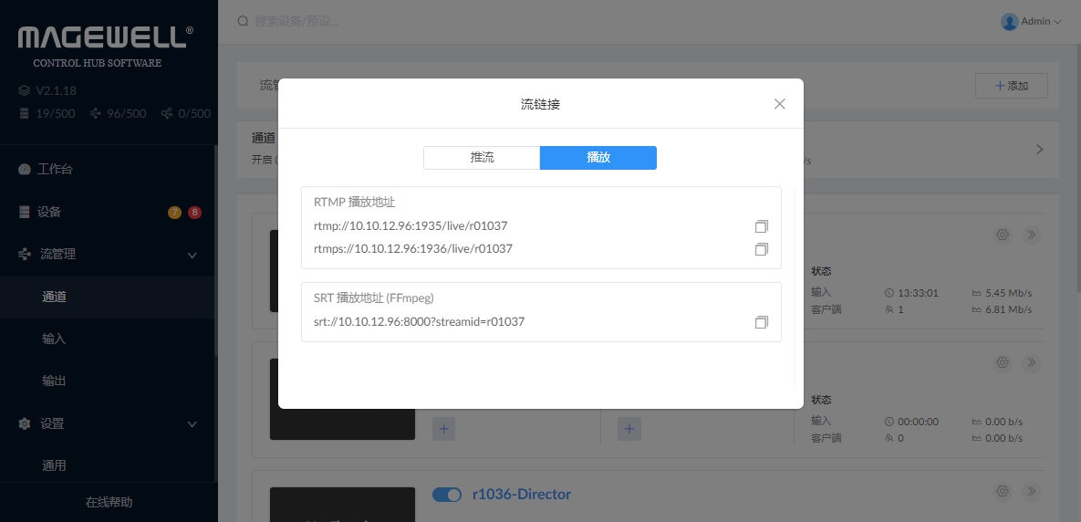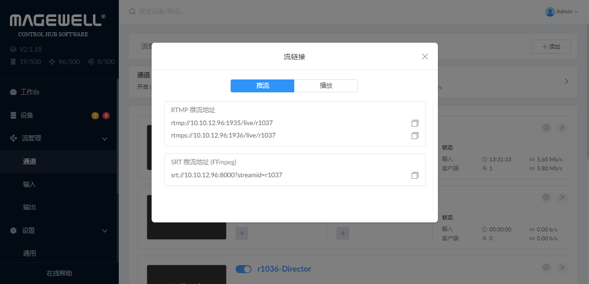 Control Hub本身可作为RTMP/SRT服务器。