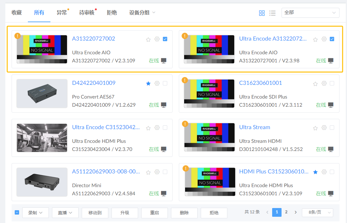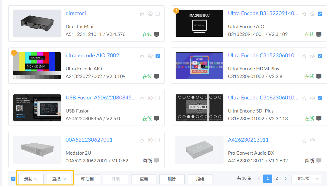 - 选择一个或多个设备,一键启动/停止录制、直播。