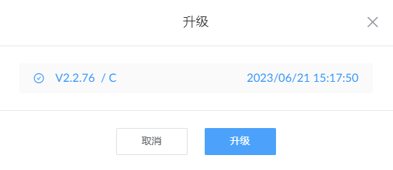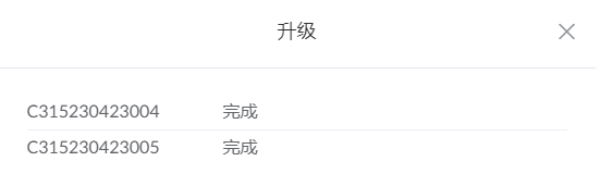 说明:批量升级要求设备类型相同,且具有相同硬件版本。固件文件需要管理员用户在“设备固件管理”页签上传。前往“设备固件管理”页签上传文件> 1. 选择待升级设备,点击升级。2. 选择升级版本,点击升级。![]() 3. 升级命令下发成功。 3. 升级命令下发成功。![]()