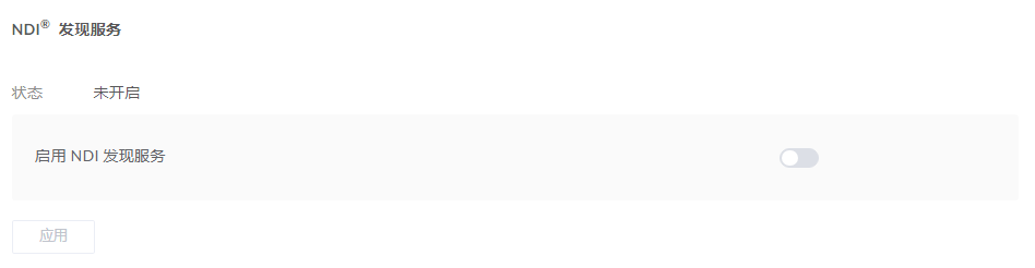 默认启用NDI®输出功能默认打开,即通道添加后NDI®流输出功能打开,反之则NDI®流输出功能关闭。
