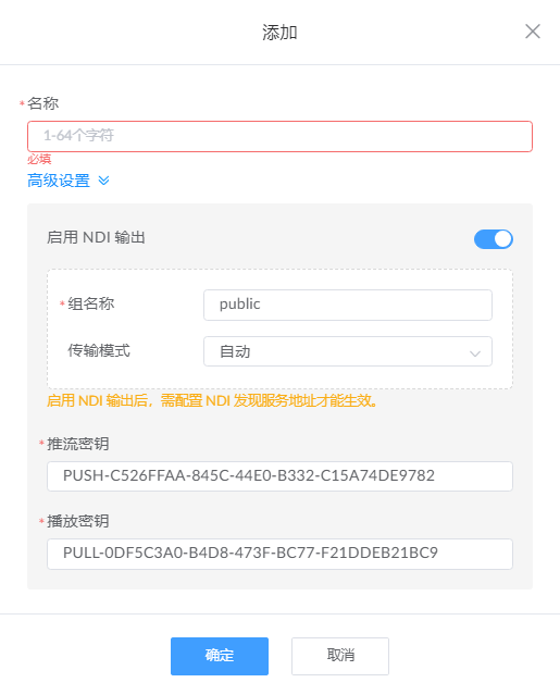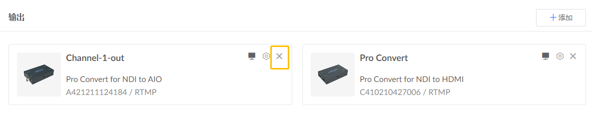 部署在Linux系统中的Control Hub,在每个通道添加成功后,默认自动生成一路NDI®(需指定NDI发现服务器地址),NDI®流个数不计入License“活跃的输出”。