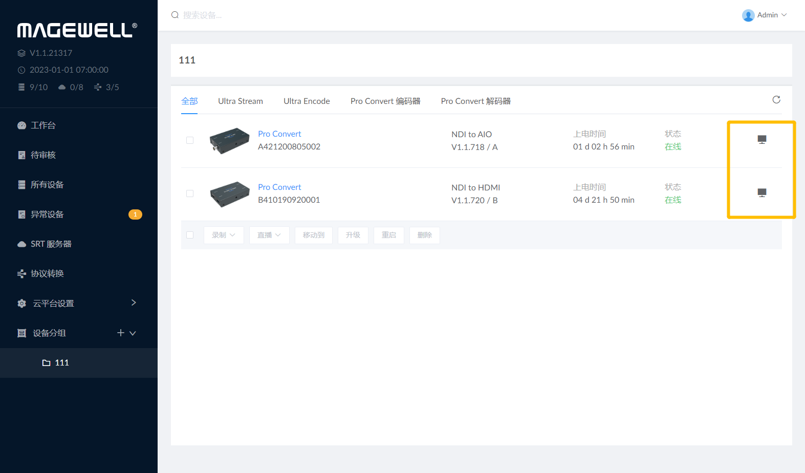 - Pro Convert编解码器:需要管理员权限,点击进入“系统设置>云平台”模块