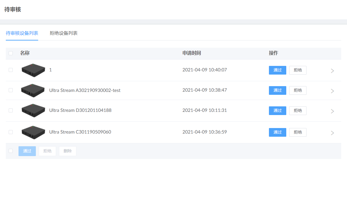 云平台侧此时会收到设备的请求,您可以在云平台的“待审核”页签查看。