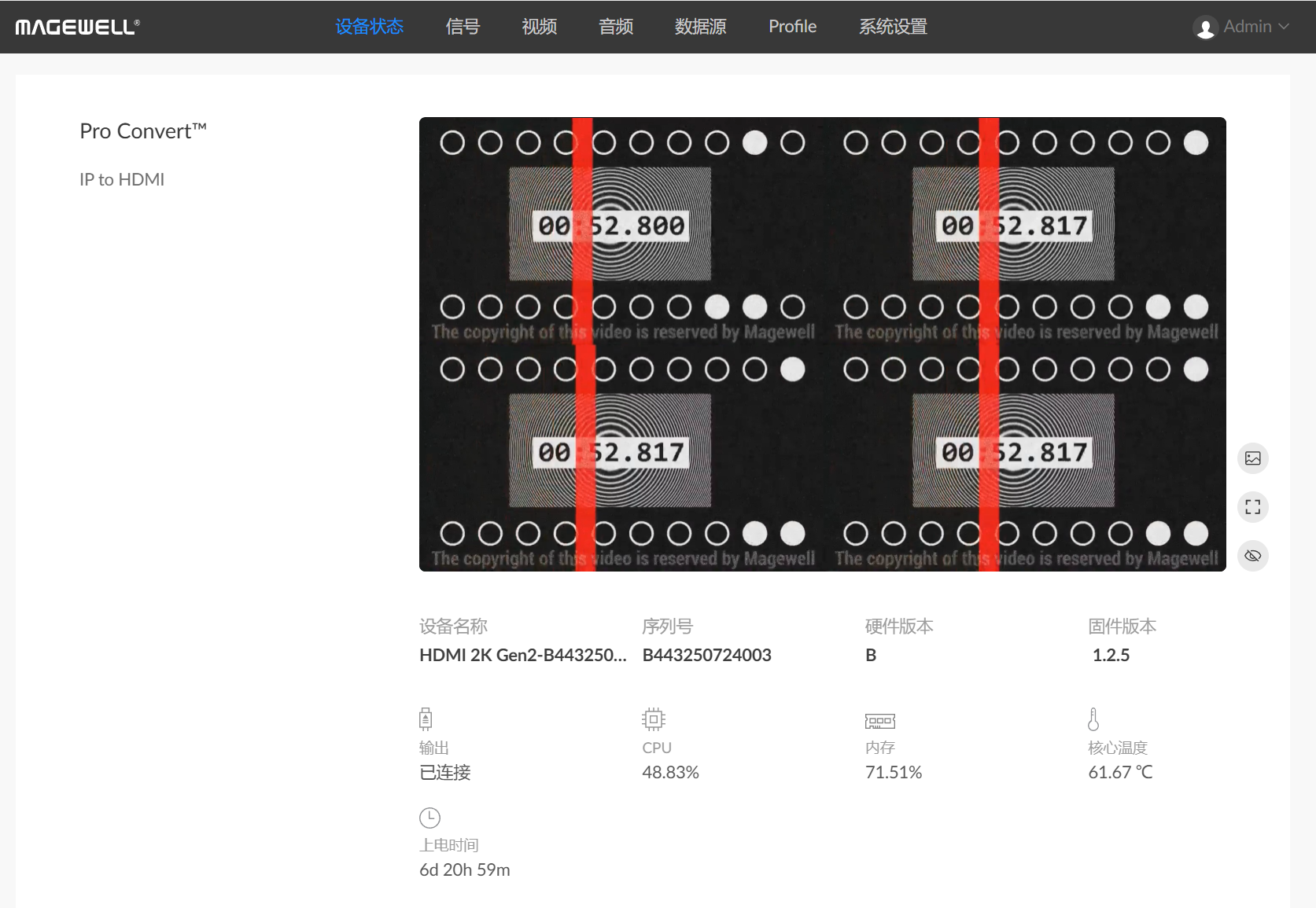 在“设备信息”页签查看预览,在外接输出确认显示结果。