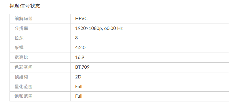 “色彩空间”显示接收视频流的解码格式。