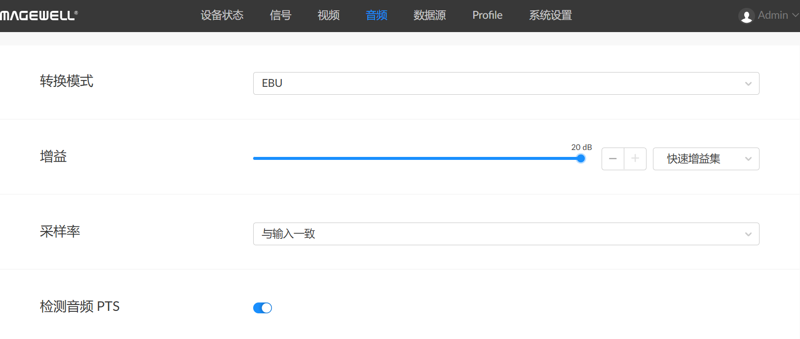 支持 2 种音频转换方式:“EBU”、“SMPTE”。默认为“EBU”。