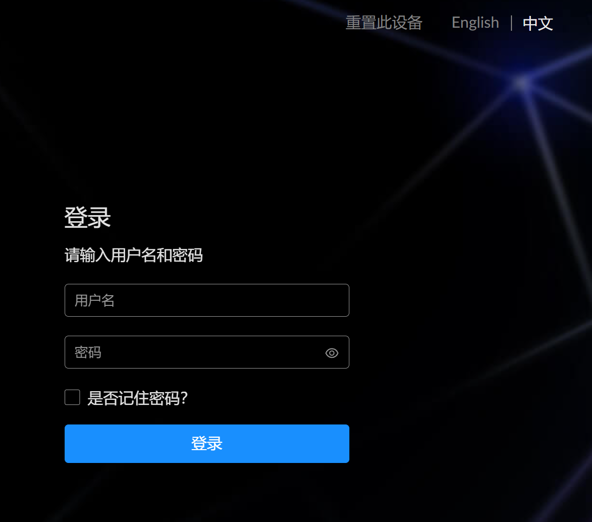注意:重置设备将丢失所有配置数据,恢复至默认值。可先导出配置文件,备份当前配置。